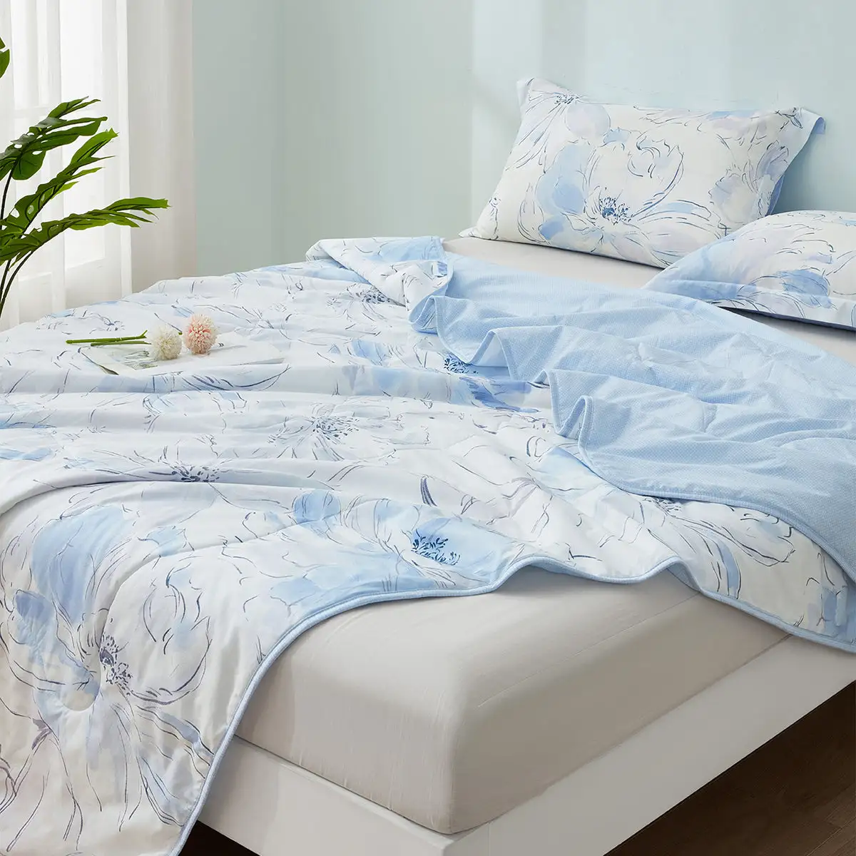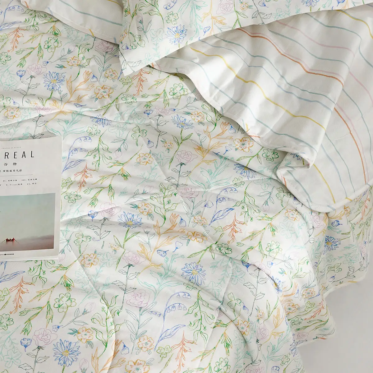 100% Cotton Antibacterial Fiber Washed Summer Quilt